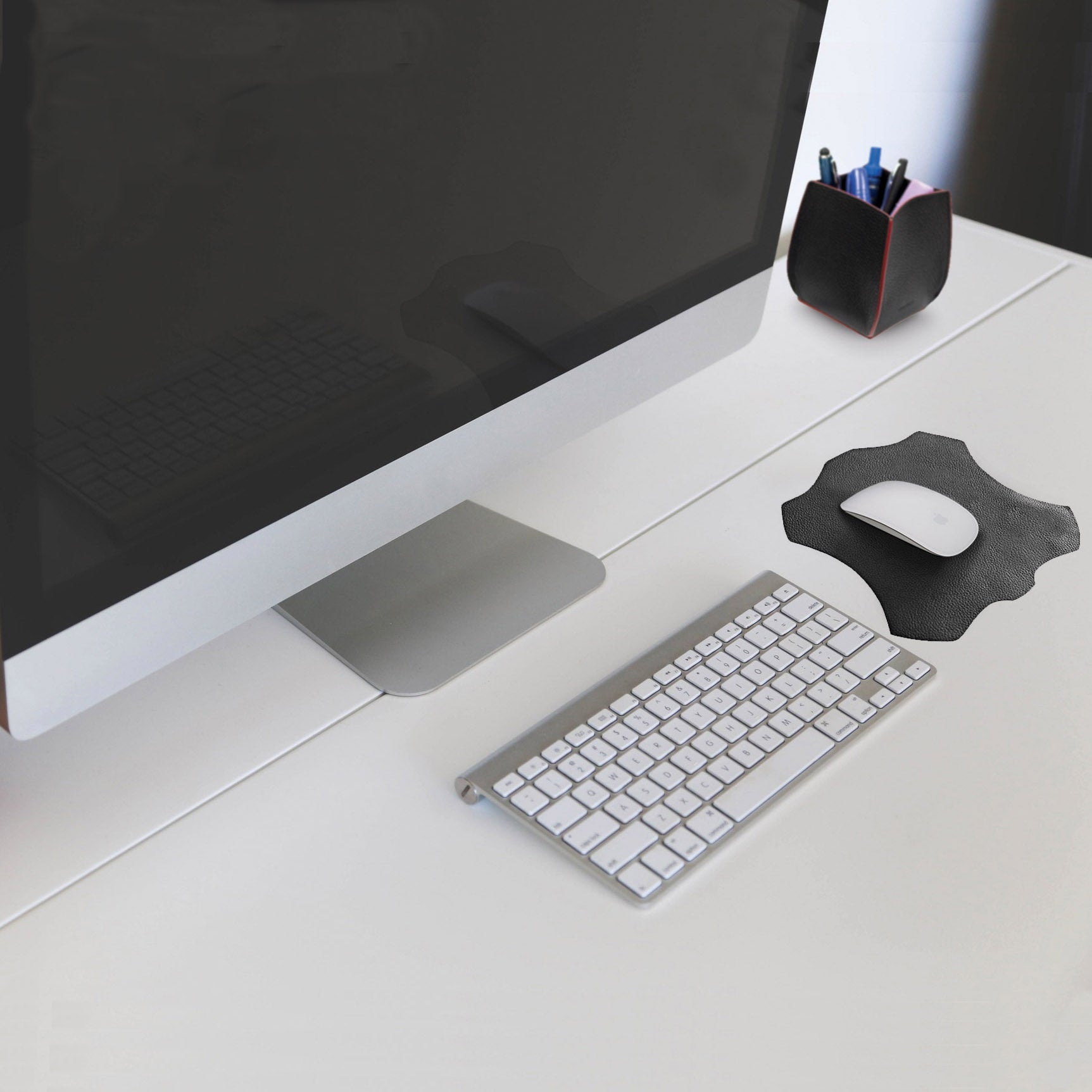 Tappetino per Mouse prodotto in Vera Pelle disegnato in Italia e realizzato artigianalmente ed interamente con un pellame di primissima qualità Made in Italy - Il colore Nero accentua il suo stile Elegante. La forma dal design accurato regalerà un tocco luxury alla vostra scrivania, al contempo proteggendone la superficie - - Le Dimensioni: cm 20 x 23 lo rendono estremamente funzionale ai movimenti del mouse, inoltre può essere facilmente abbinato agli altri accessori da scrivania - Prodotto dal design Esclusivo, curato nei minimi dettagli. Ottima Idea Regalo per persone speciali. L’ intramontabile Stile classico, che si trasforma in Stile moderno