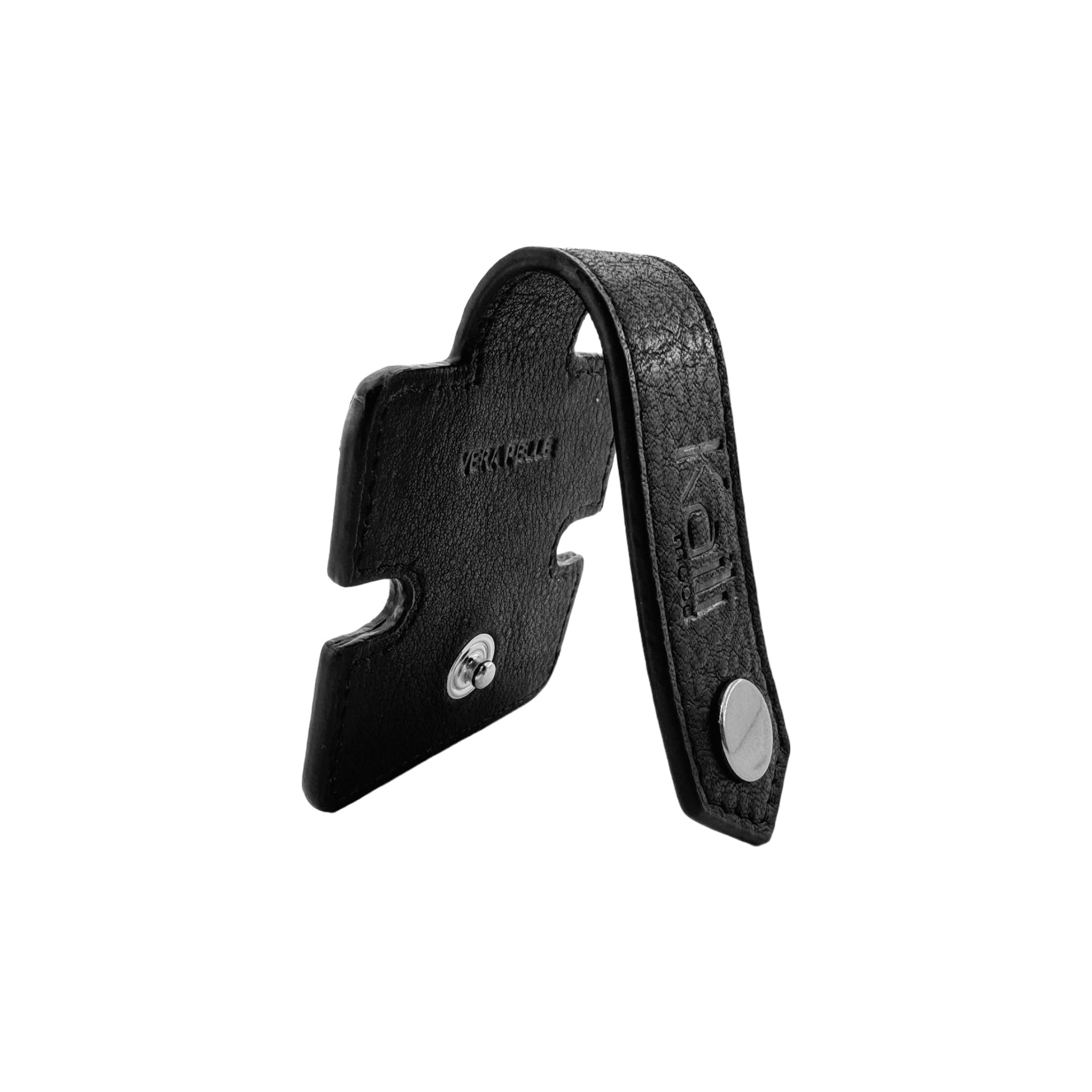 - K0019AB | Avvolgicavo in Vera Pelle pieno fiore con leggera grana. Colore Nero. Chiusura con bottone automatico. Dimensioni da chiuso: cm 6x6x1. Confezione: Gift Box rigido fondo/coperchio