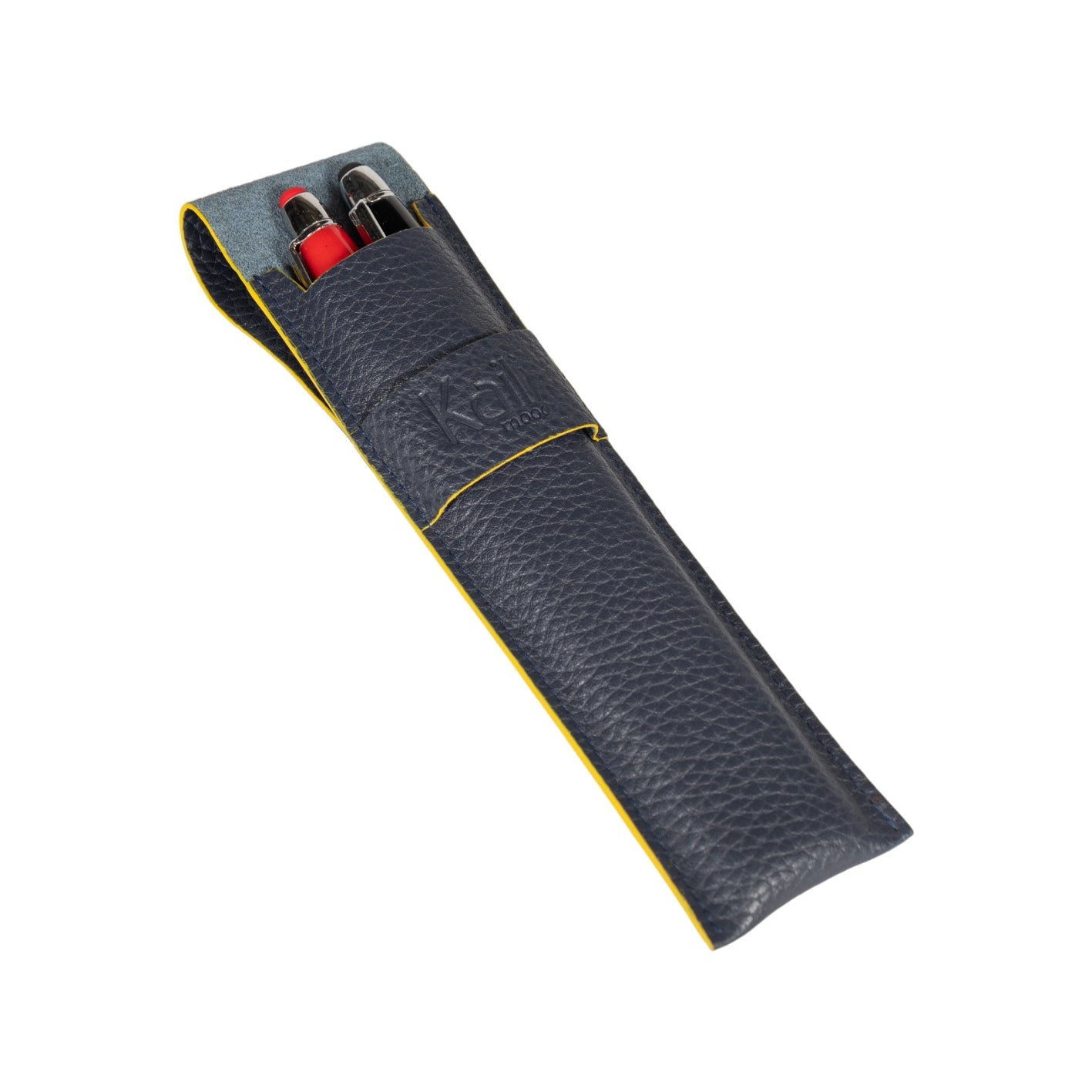 Il Porta Penne è un prodotto in Vera Pelle disegnato in Italia e realizzato artigianalmente ed interamente con un pellame di primissima qualità. Il colore Blu accentua il suo stile Classico e Elegante i bordi Gialli ne delineano la silhouette. La chiusura con pattina e passante garantiscono la stabilità delle penne. Le Dimensioni: cm 4.5 x 16.5 ti permettono di portare con te le tue penne preferite senza essere troppo ingombrante. La confezione in Scatola regalo fondo/coperchio rende il Porta Penne ideale per un regalo ed al tempo stesso la protegge dalla polvere e dalla luce durante il periodo di inutilizzo.