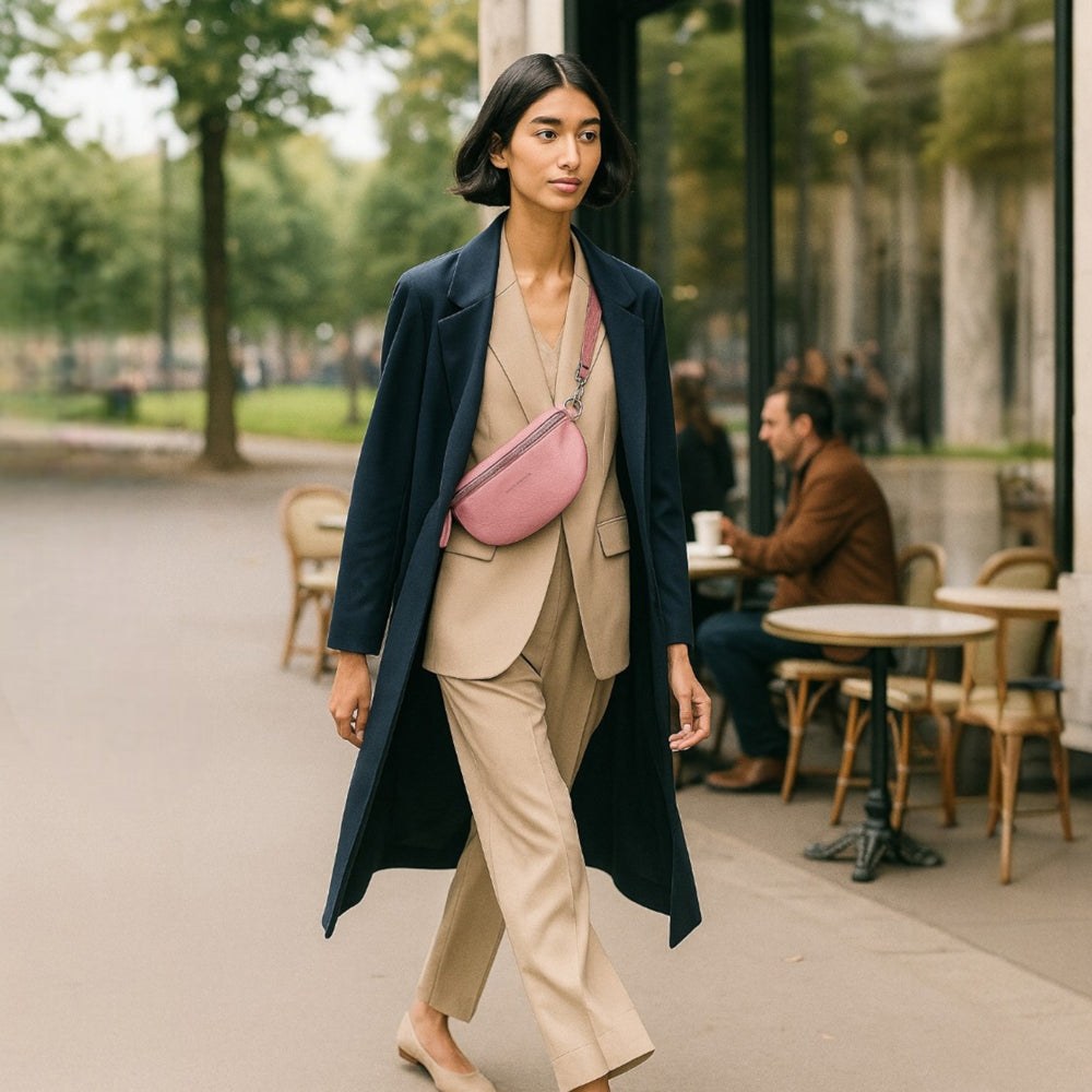 RB1015AZ | Marsupio con tracolla removibile in Vera Pelle Made in Italy. Attacchi con moschettoni in metallo Nickel Lucido - Colore Rosa Antico - Dimensioni: 24 x 14 x 7