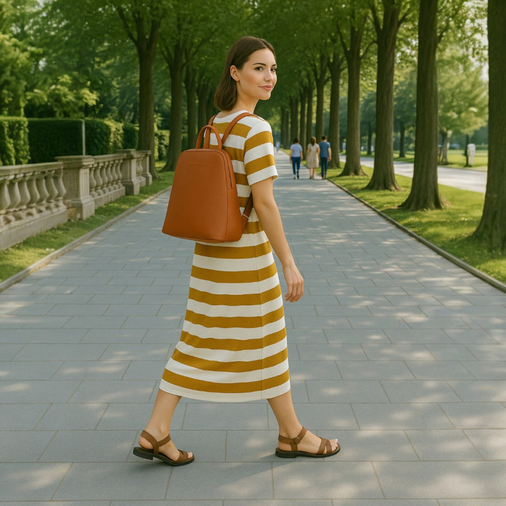 RB1018AM | Zaino Donna Doppio scomparto in Vera Pelle Made in Italy con spallacci regolabili. Accessori in metallo Canna di Fucile - Colore Paprika - Dimensioni: cm 26 x 30 x 14,5