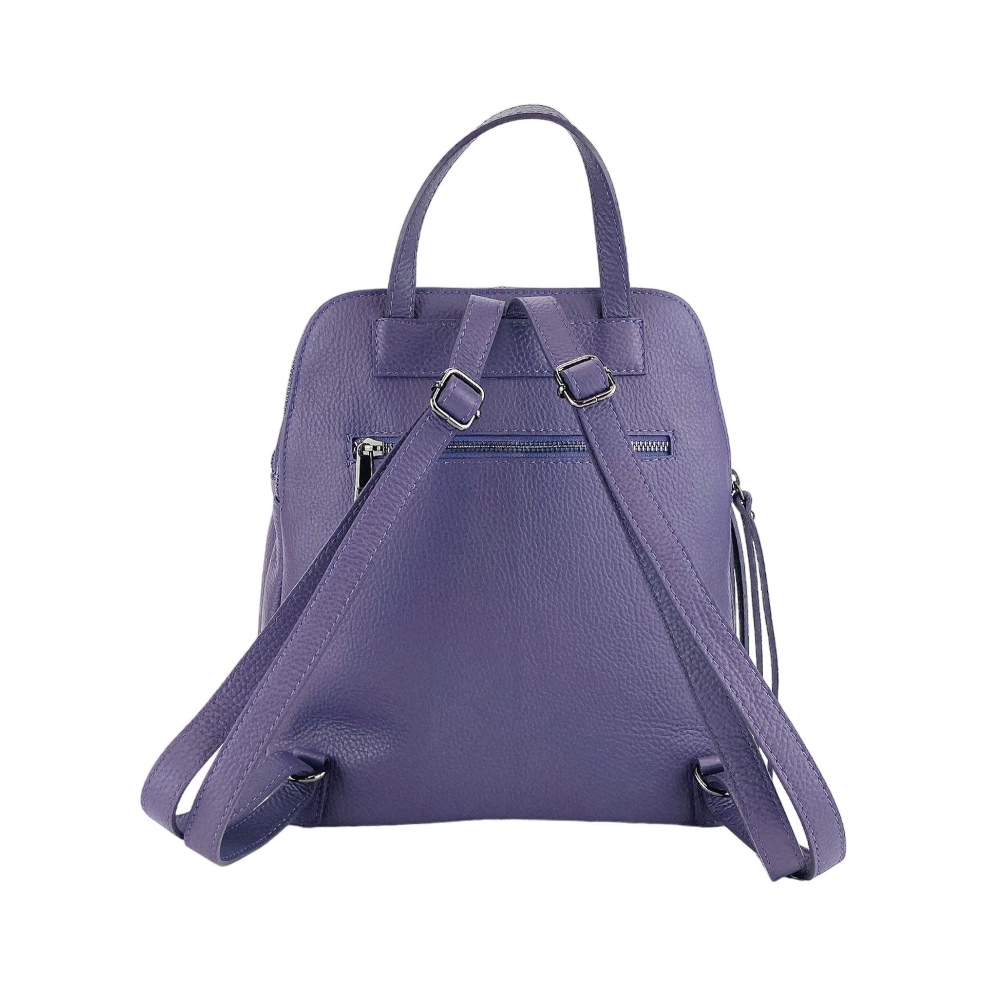 RB1018Y | Zaino Donna Doppio scomparto in Vera Pelle Made in Italy con spallacci regolabili. Accessori in metallo Canna di Fucile - Colore Viola - Dimensioni: cm 26 x 30 x 14,5